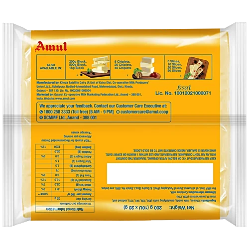Enjoy the real taste of India With Amul Cheese Slices. The Amul cheese is made from the graded milk and by using microbial Renne. Sliced cheese is a great source of milk proteins, vitamins and other nutrients. It can be used in hundreds of ways in any dish. It’s delicate flavoured ingredient gives a lip-smacking flavour to every dish. Cheese is a delicious component and is also used in the preparation of sweet dishes.