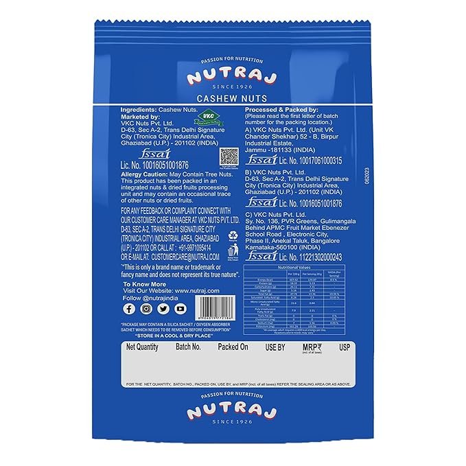 Nutraj Cashews 200 gm pack offers premium kaju with a rich taste and buttery texture, ideal for daily snacking and festive recipes.