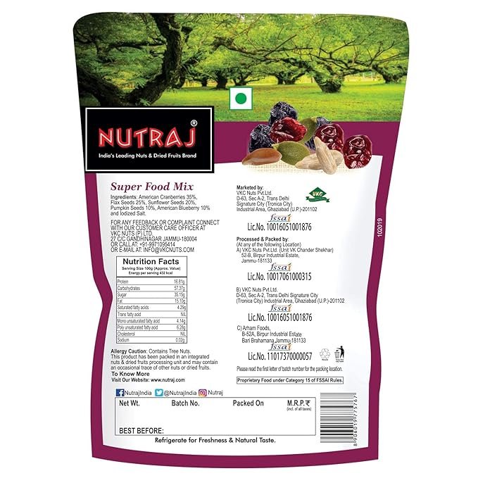 Nutraj Super Food Mix includes an assortment of antioxidant-rich ingredients to cleanse your body and clear your mind. By combining Dried berries and dried seeds- this combination offers an ample supply of nutrients in one tasty trail mix.