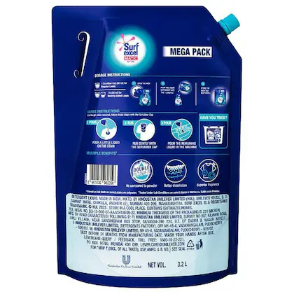 Presenting surf excel matic top load liquid detergent – a revolutionary liquid detergent for top load washing machines. Being liquid, it is best suited for washing machines and ensures a superior laundry experience.